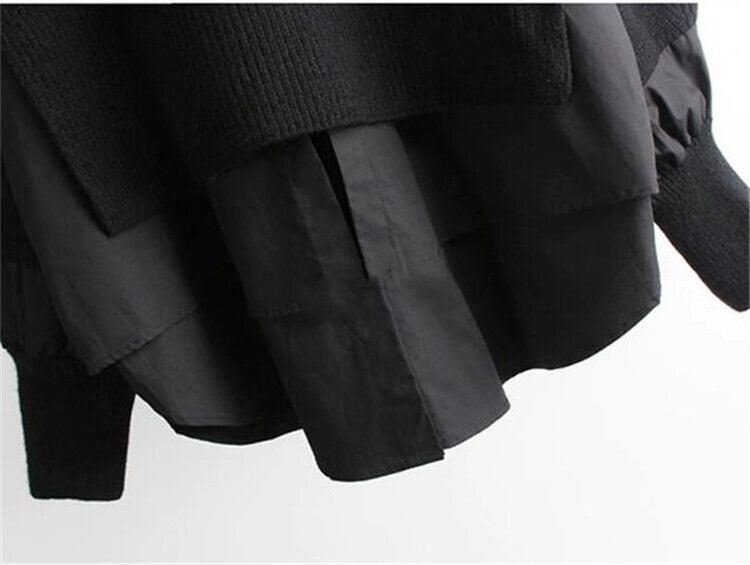 ドッキング長袖ニット/ブラック