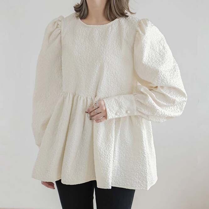 エンボス加工の上品なジャガードブラウス